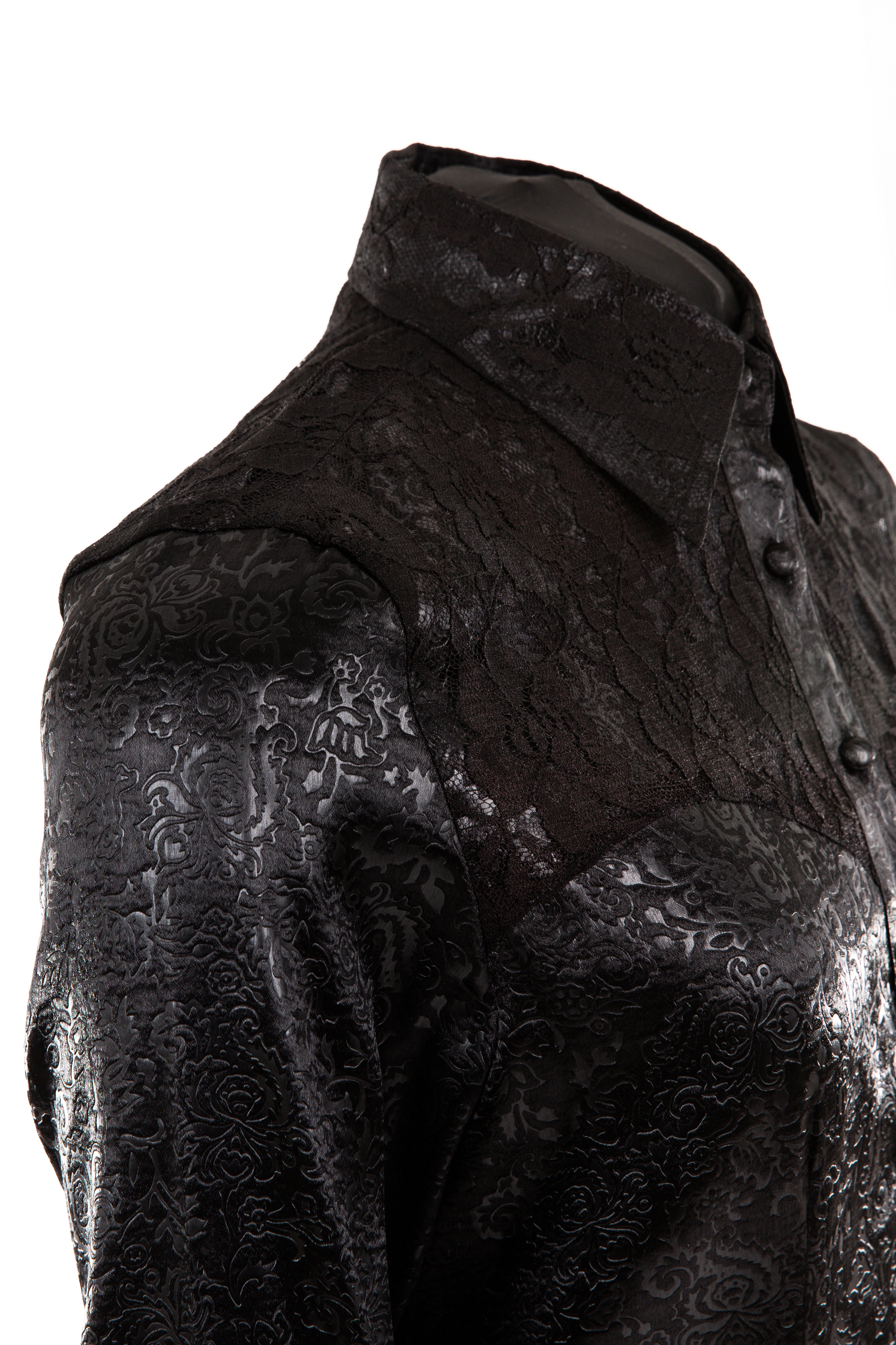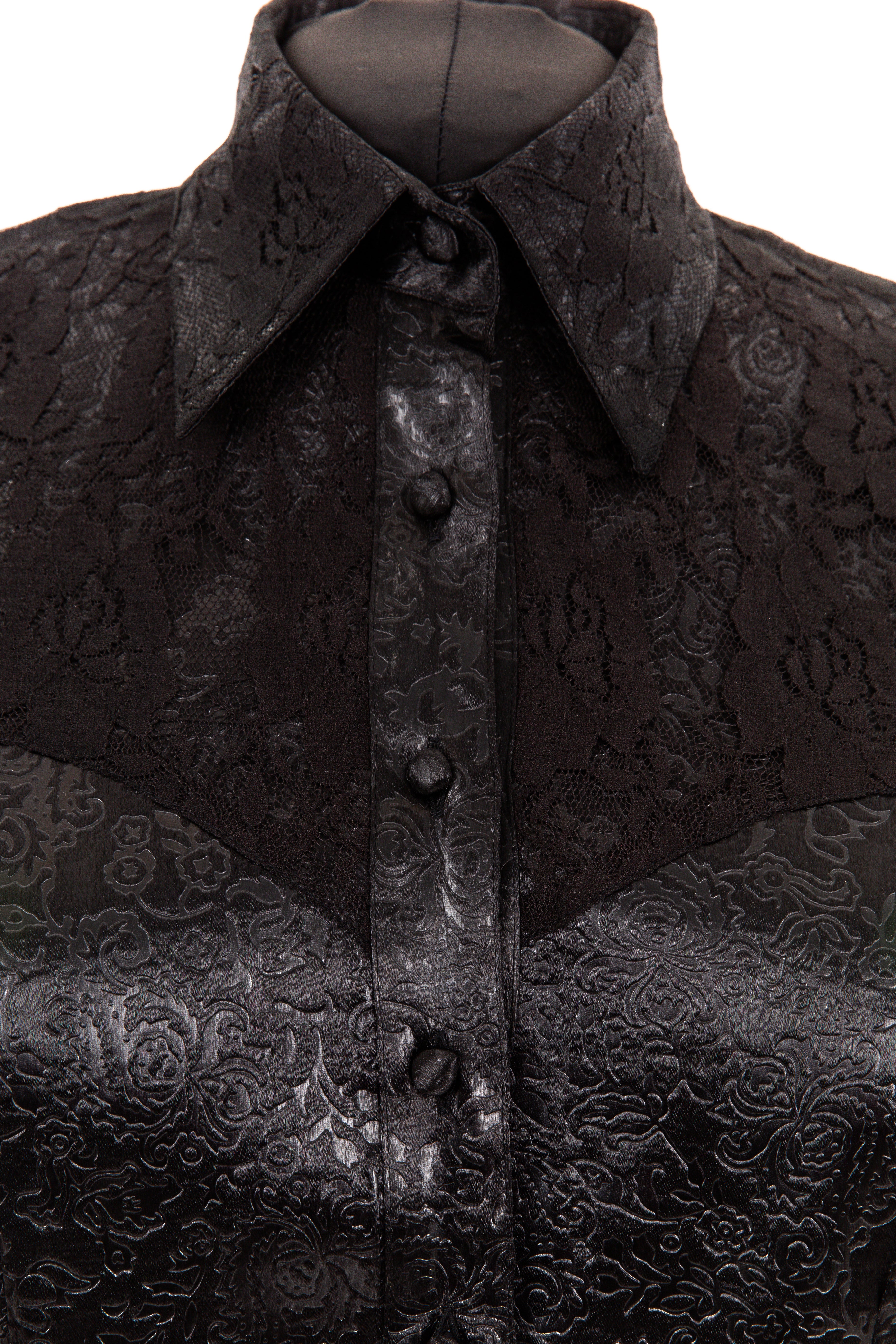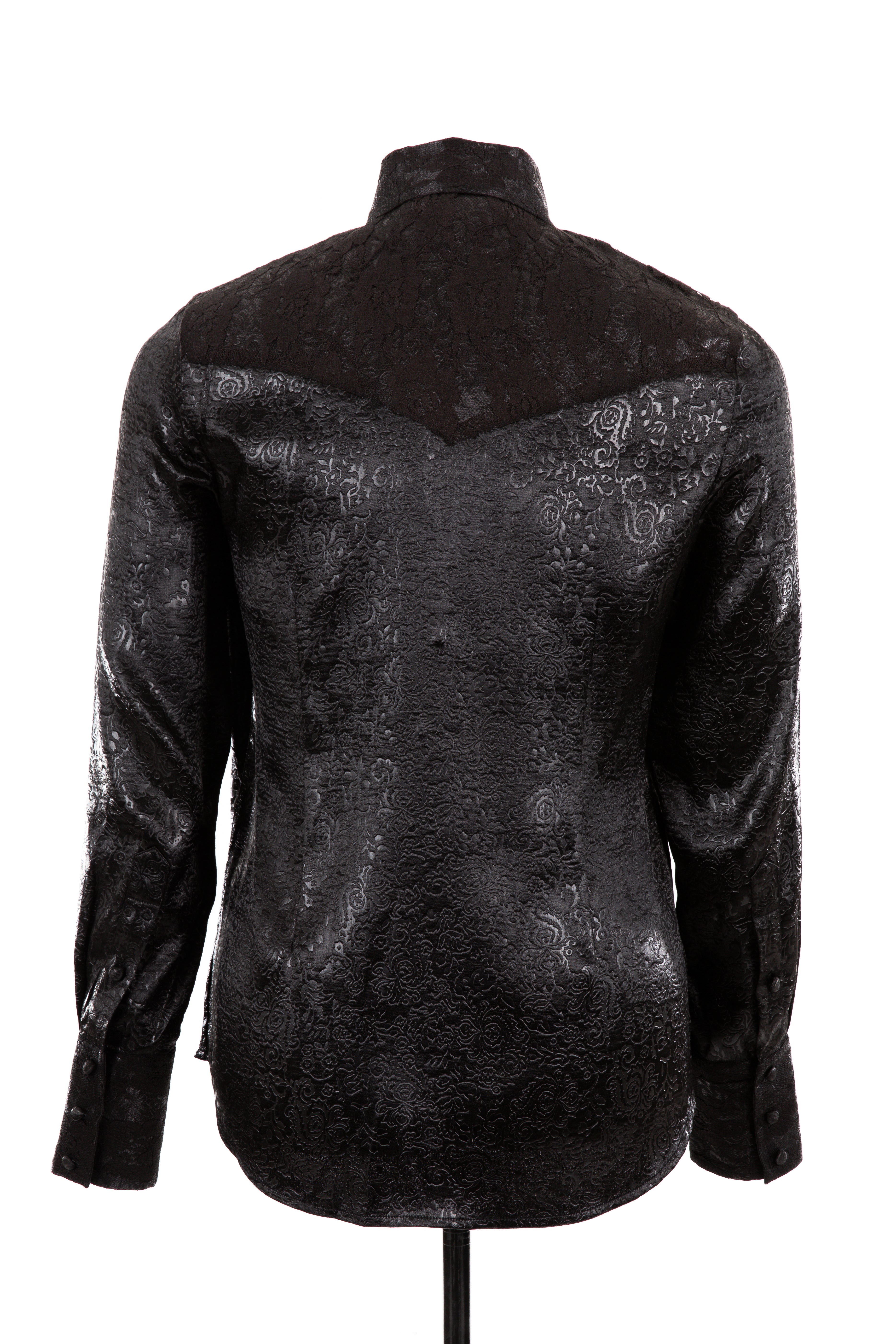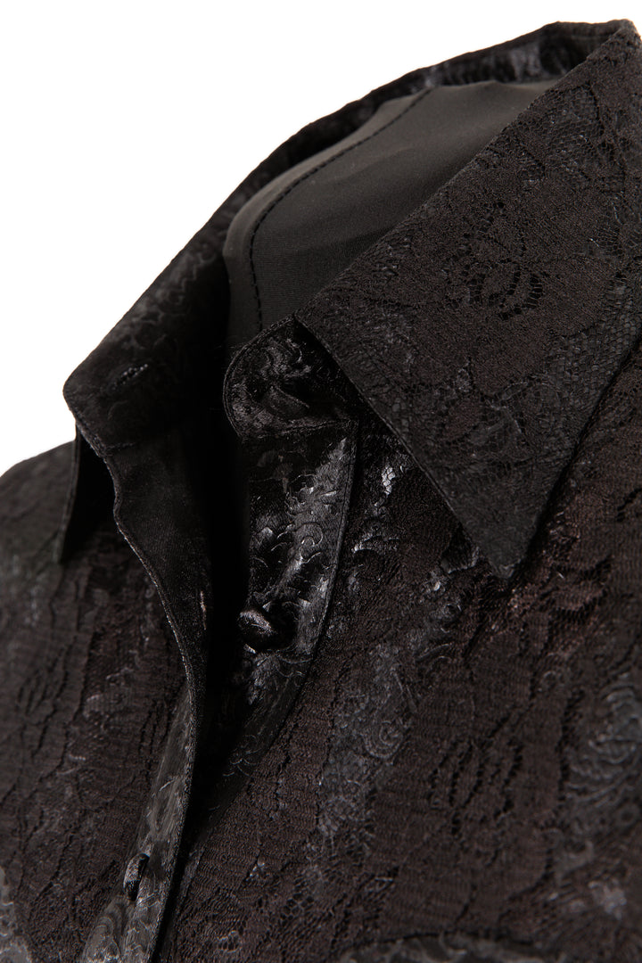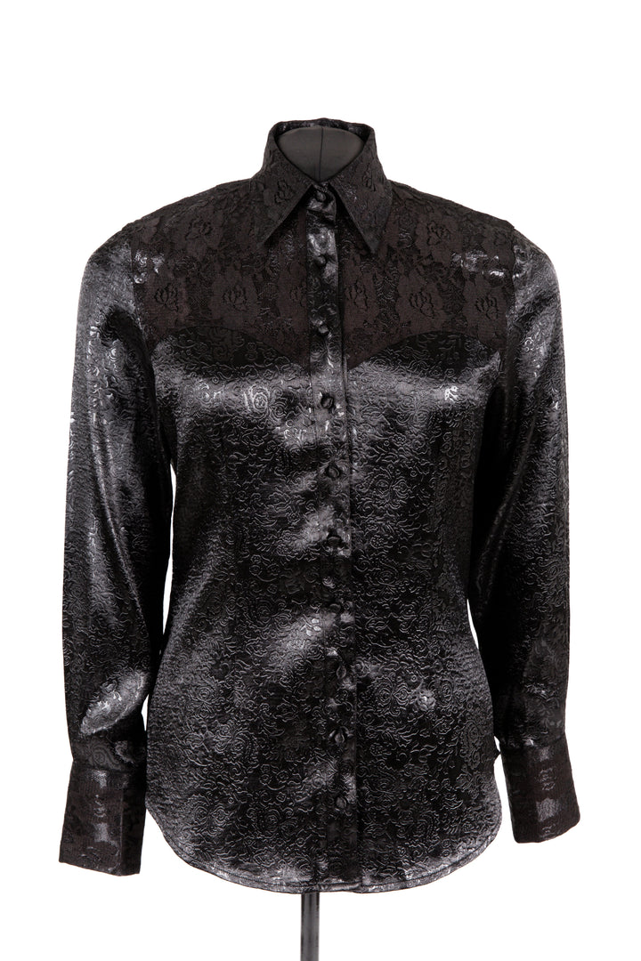 Embossed Satin & Lace Shirt (Black)