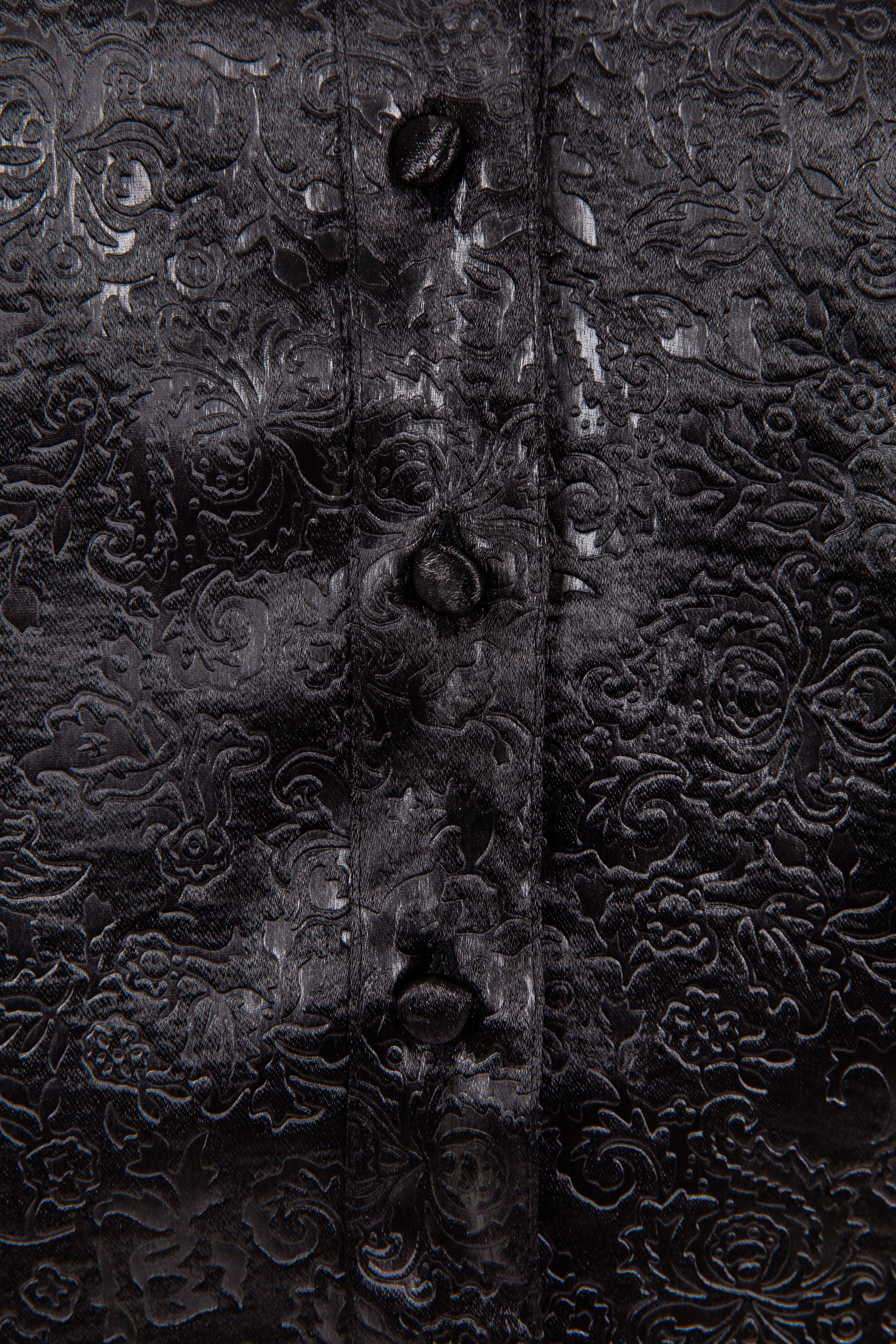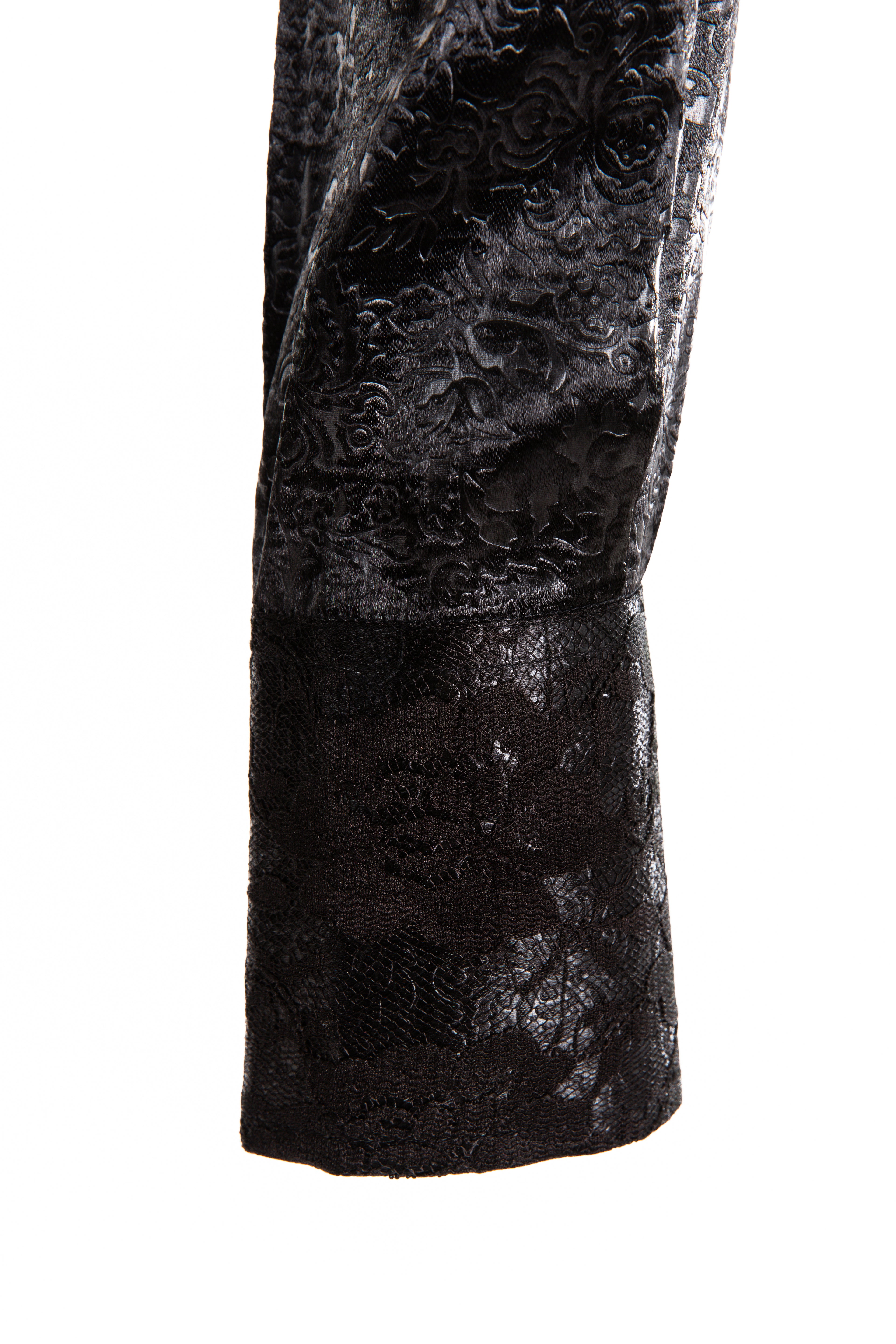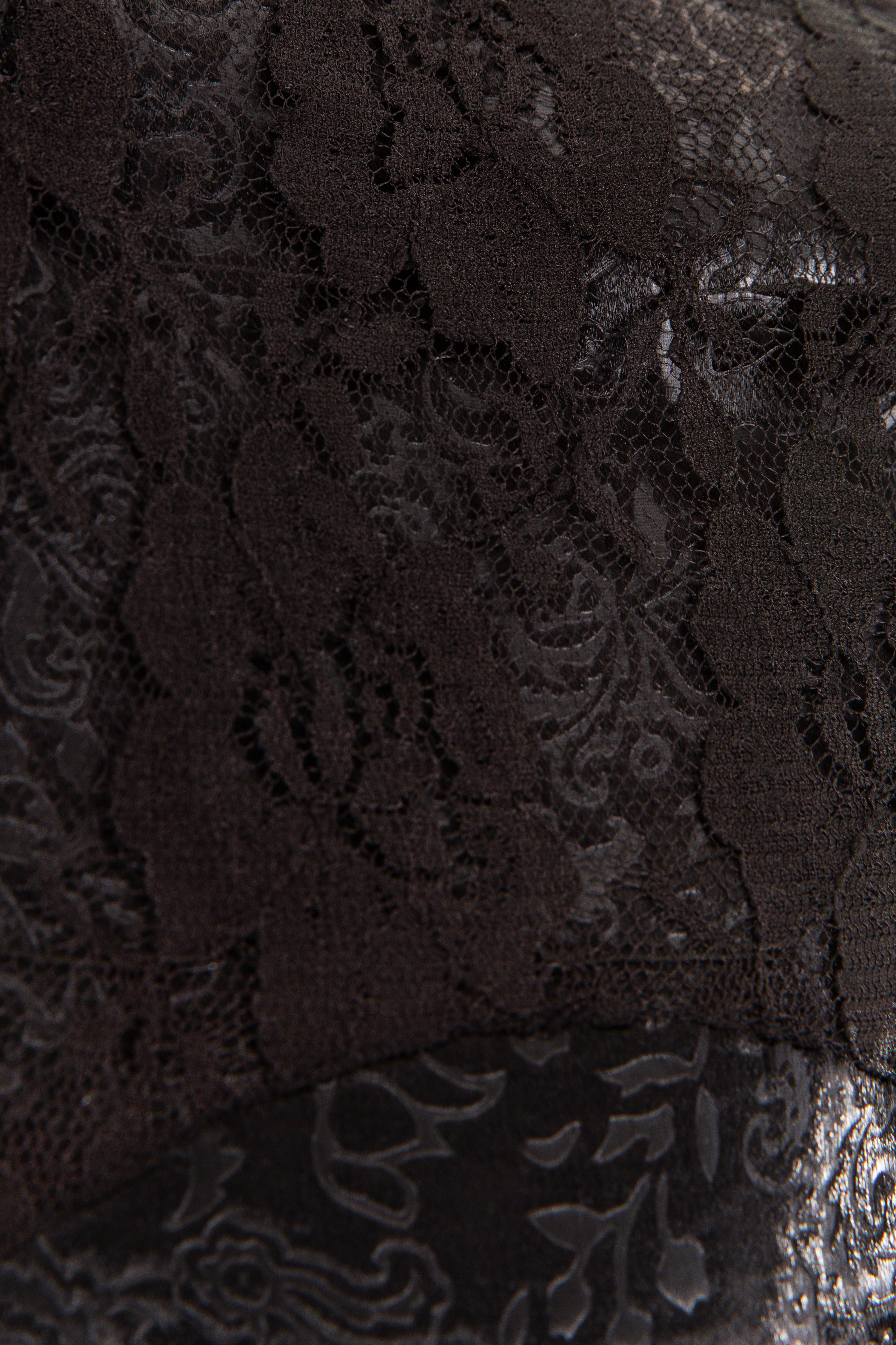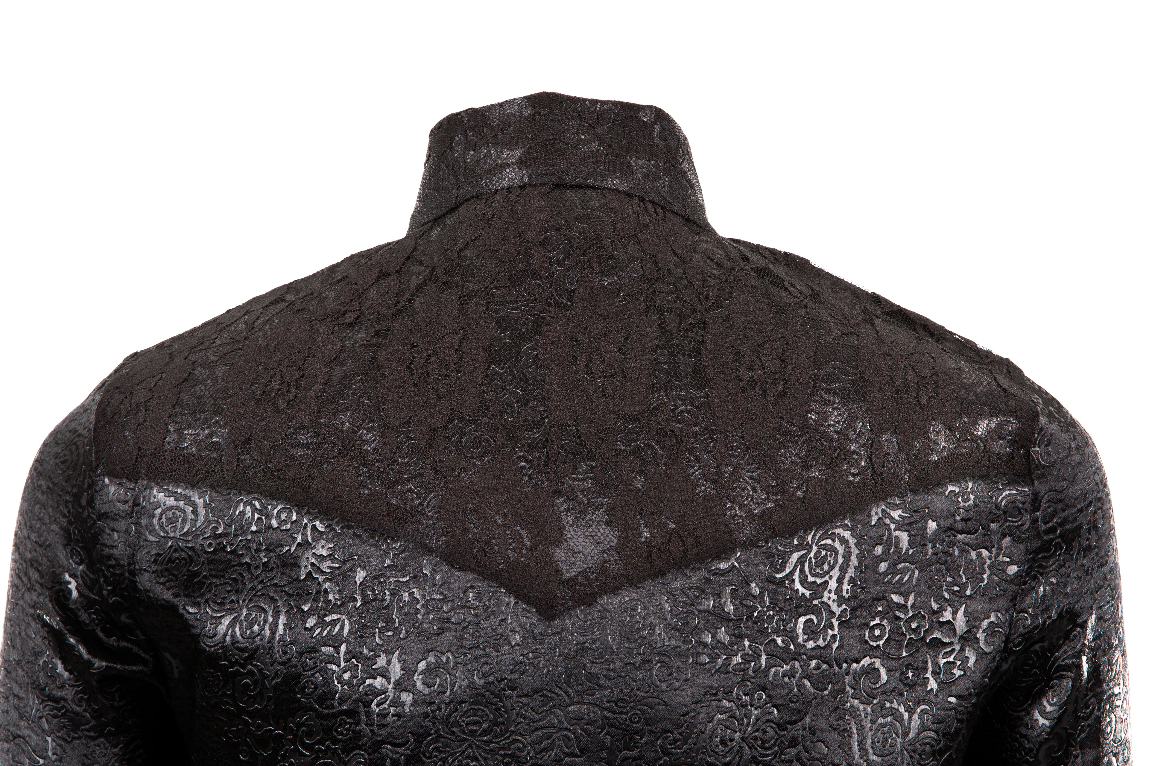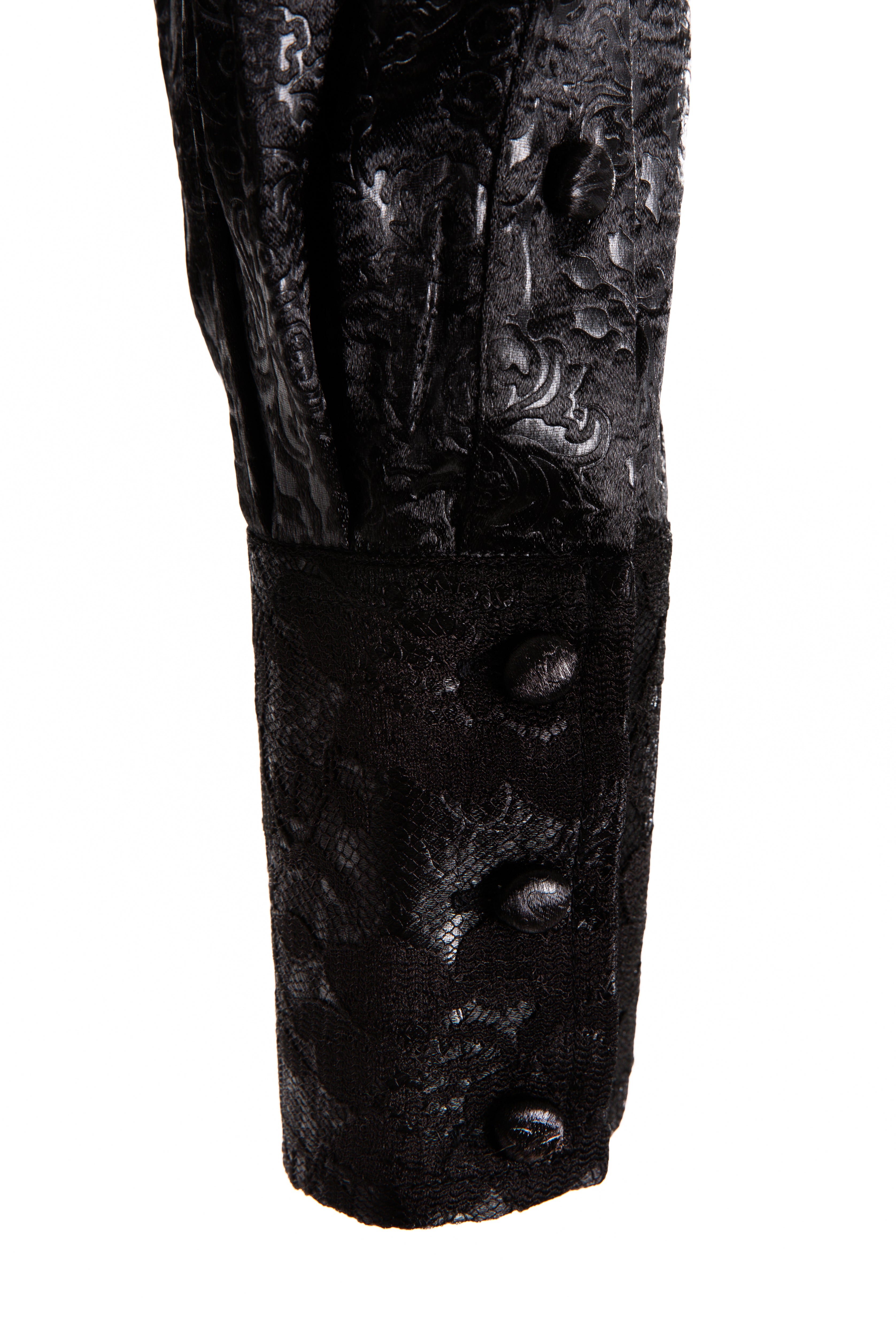 Embossed Satin & Lace Shirt (Black)