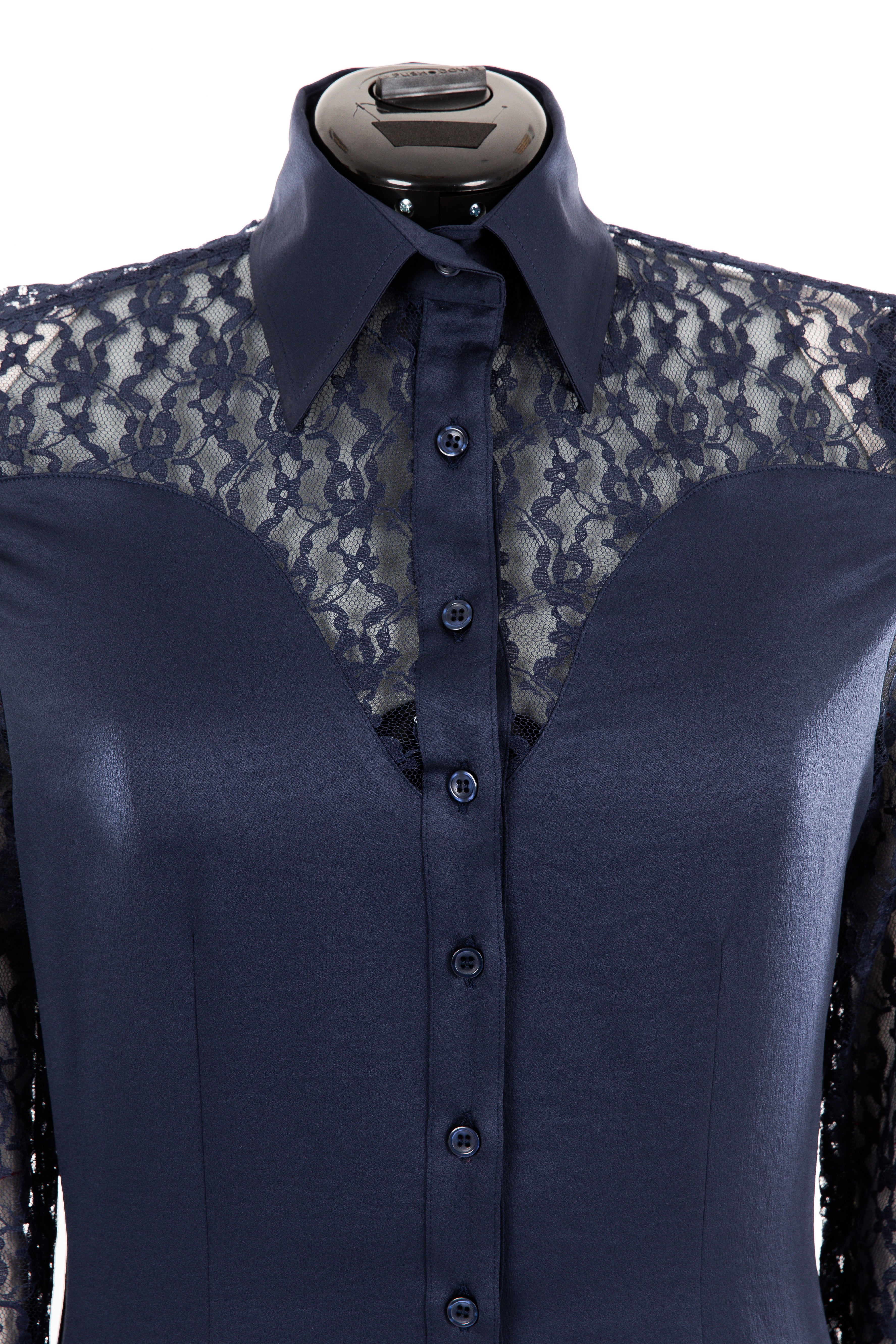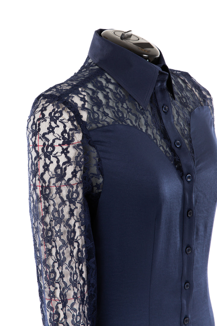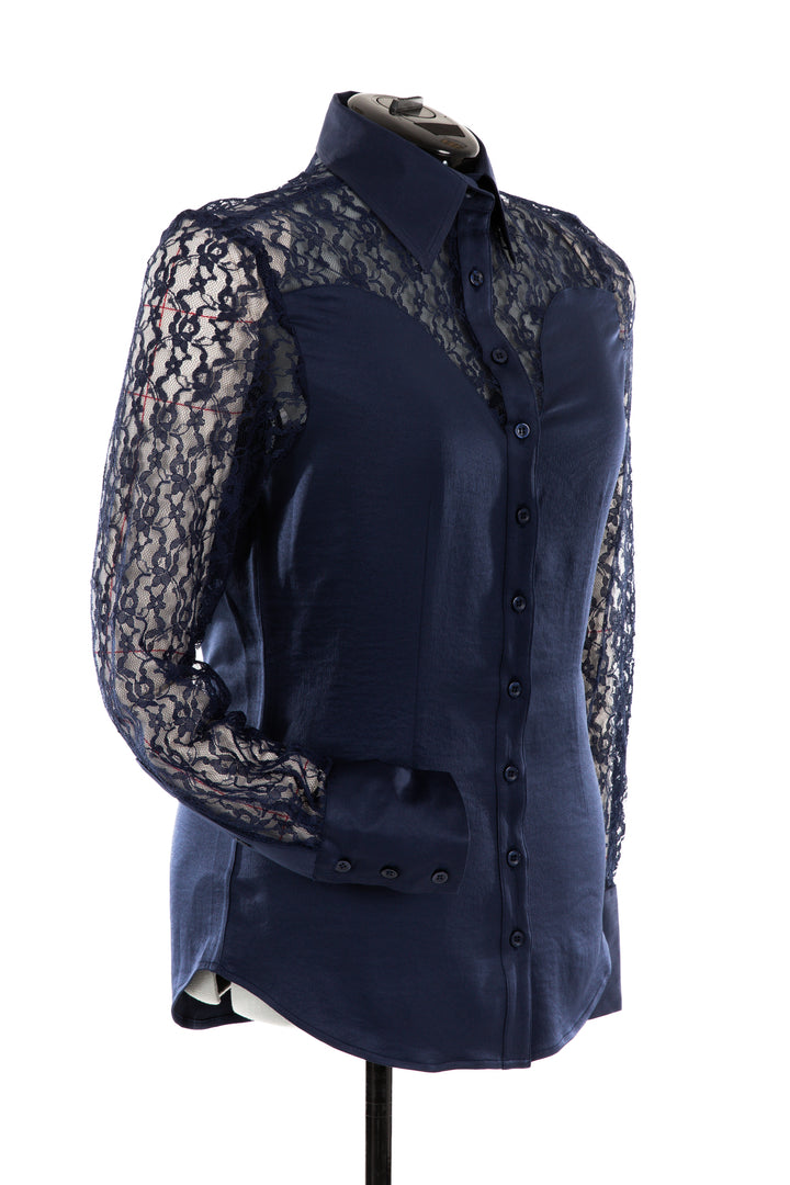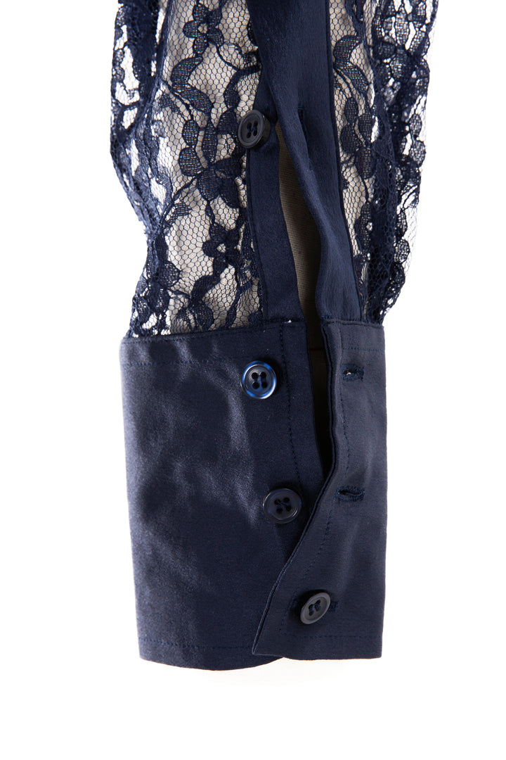 Lace & Crepe Show Shirt (Navy Blue)