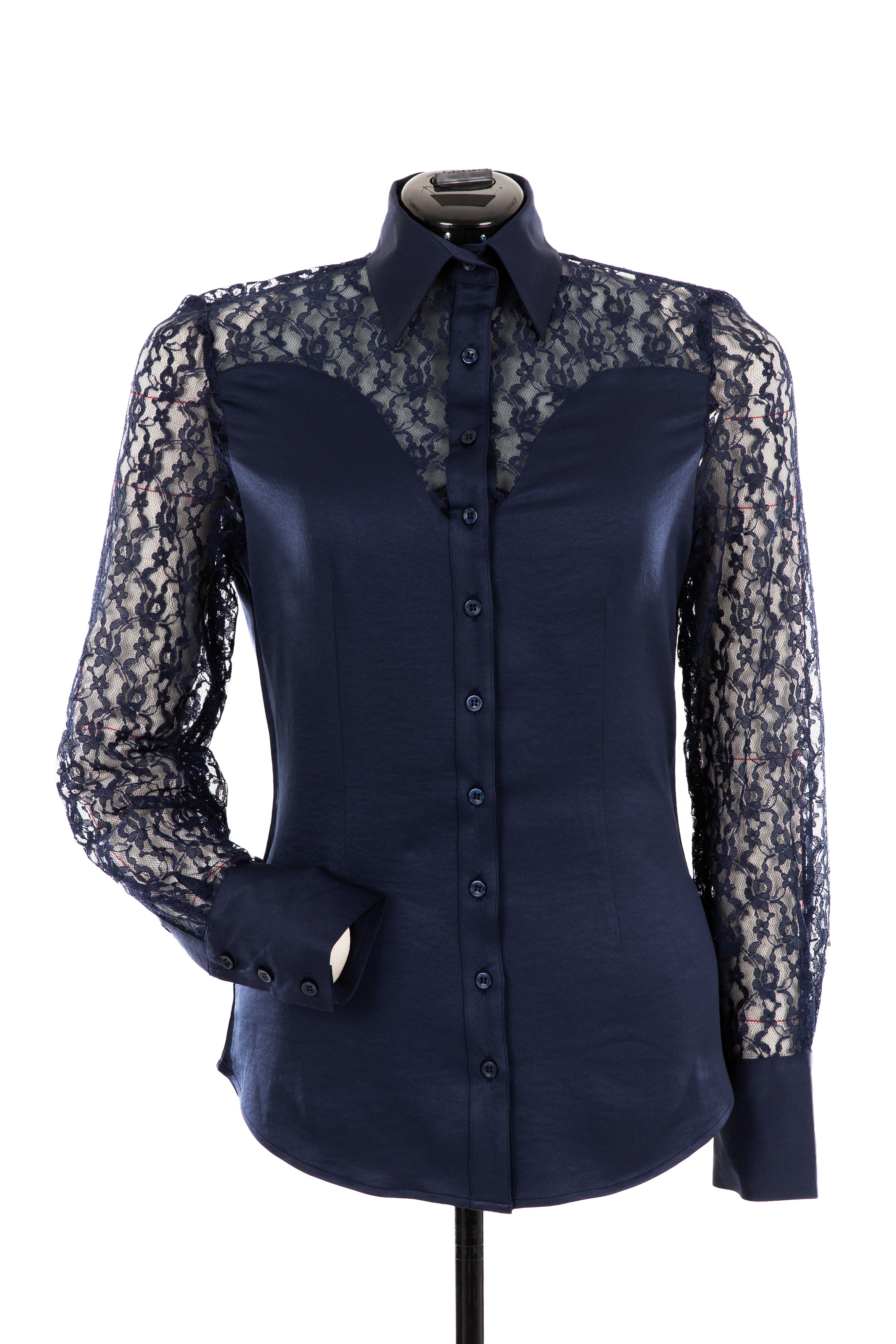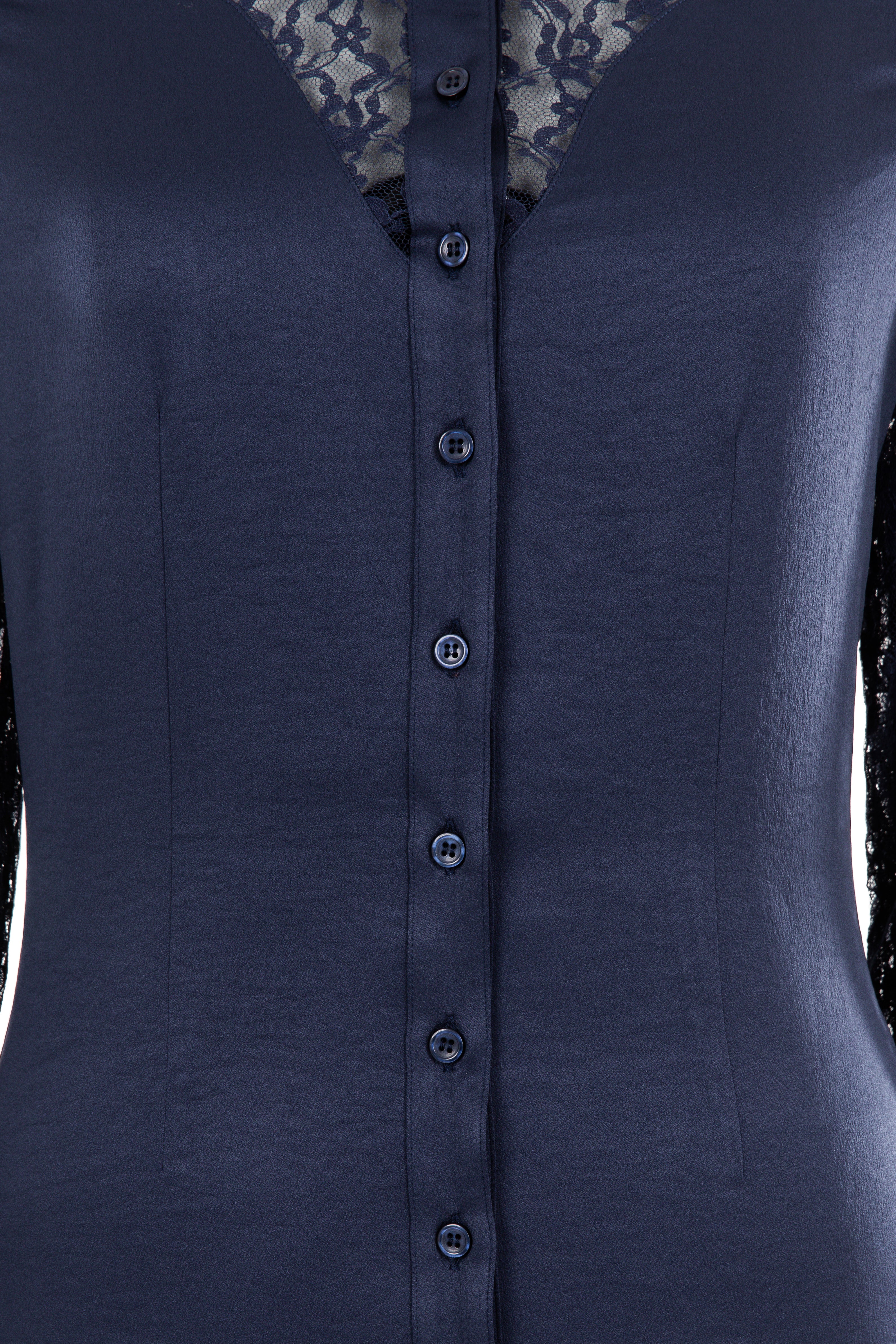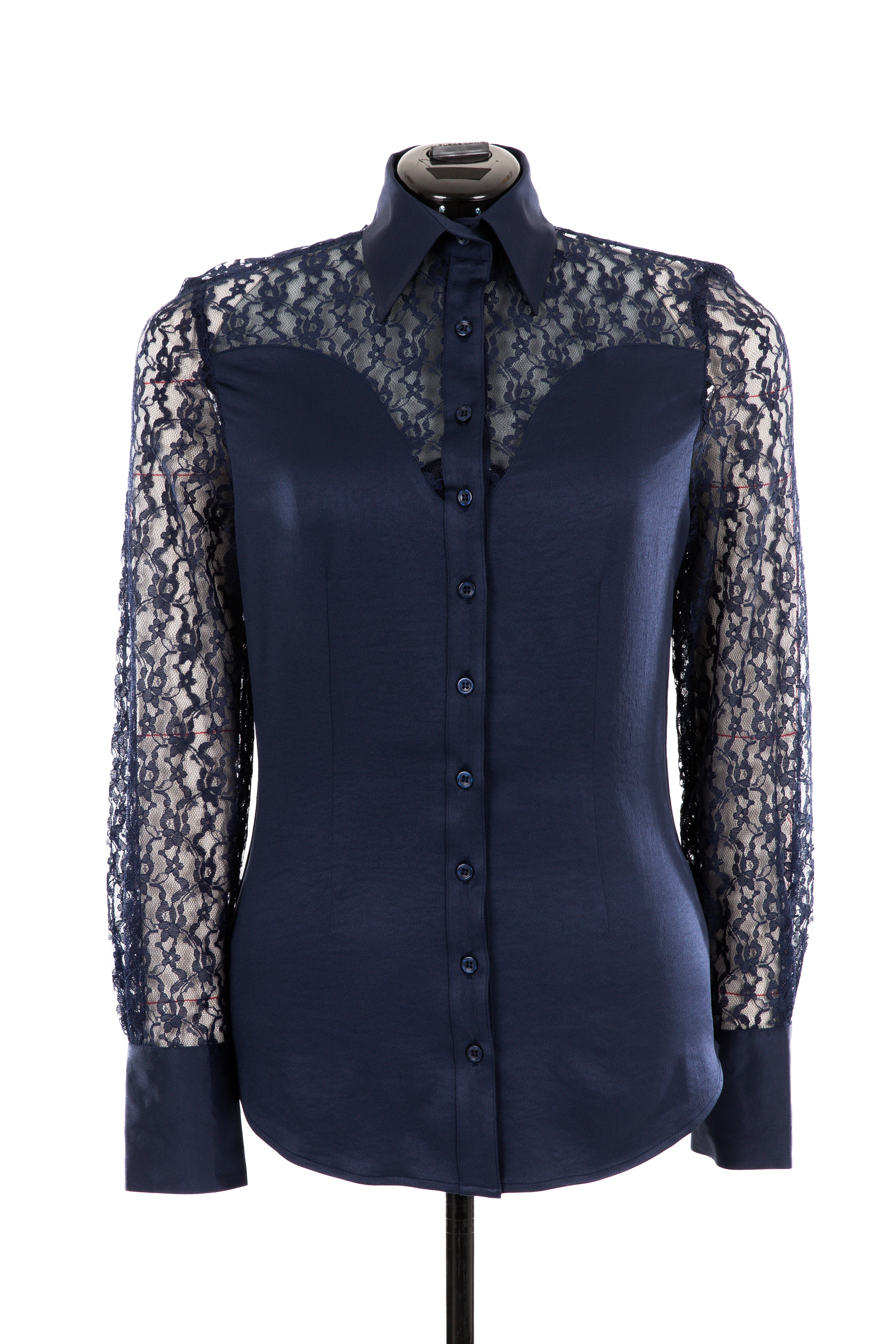 Lace & Crepe Show Shirt (Navy Blue)