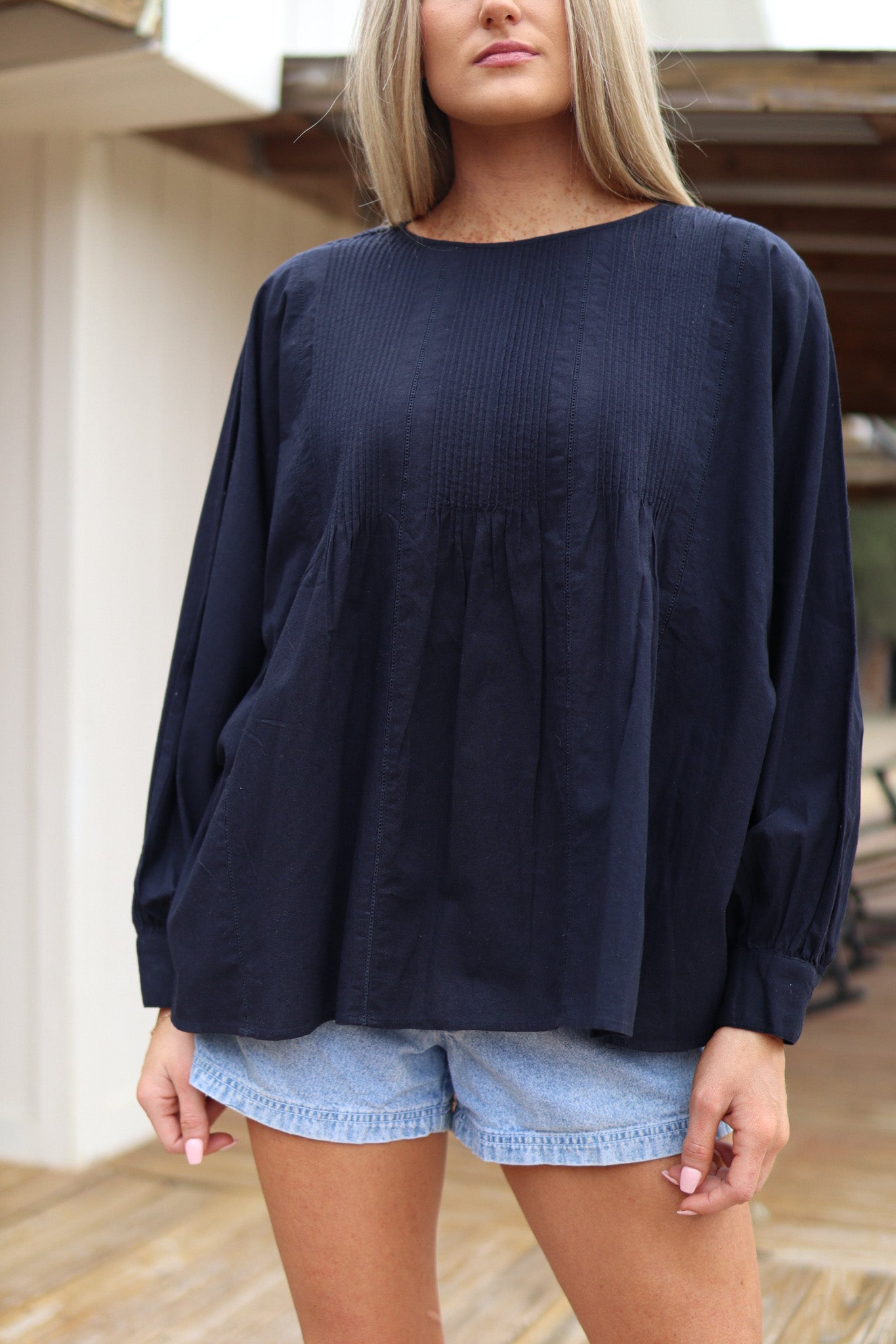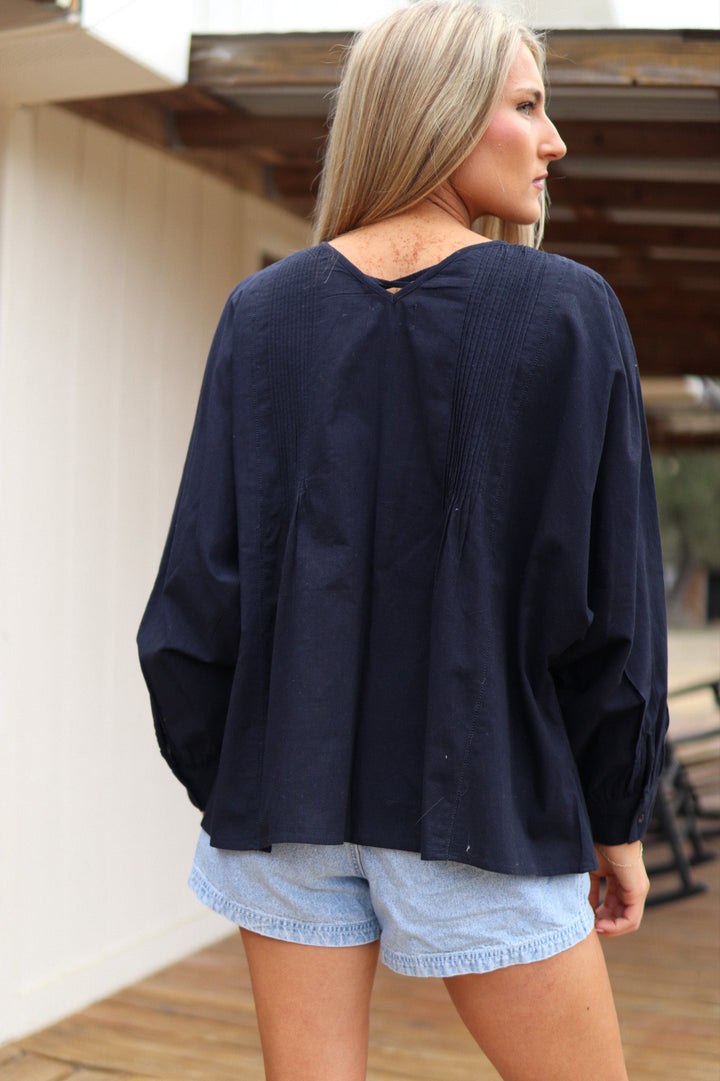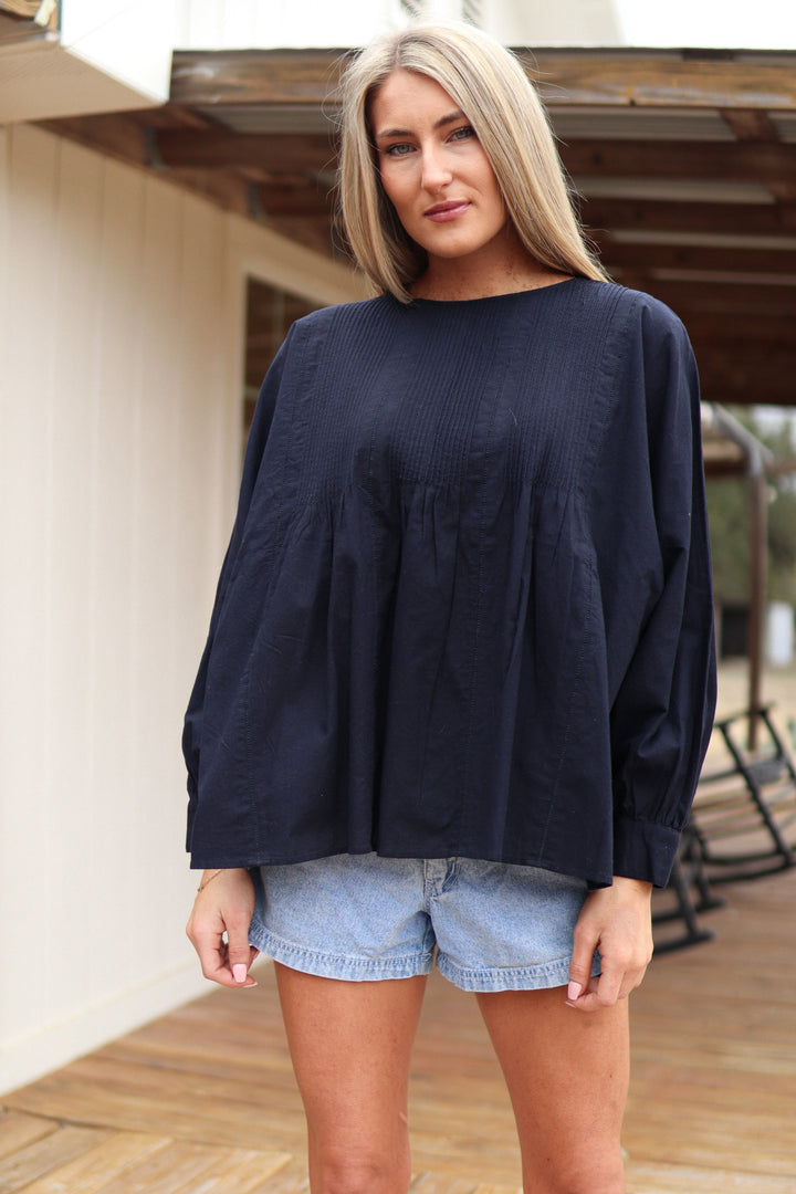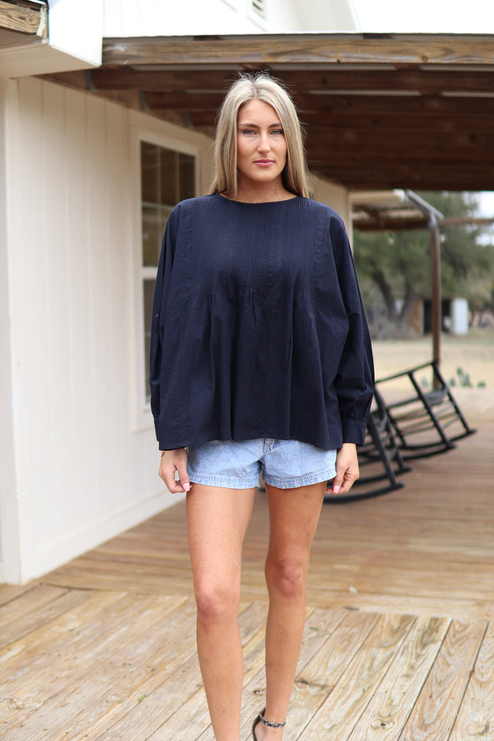 Blouse Smocked Navy